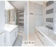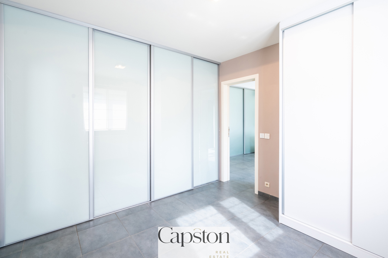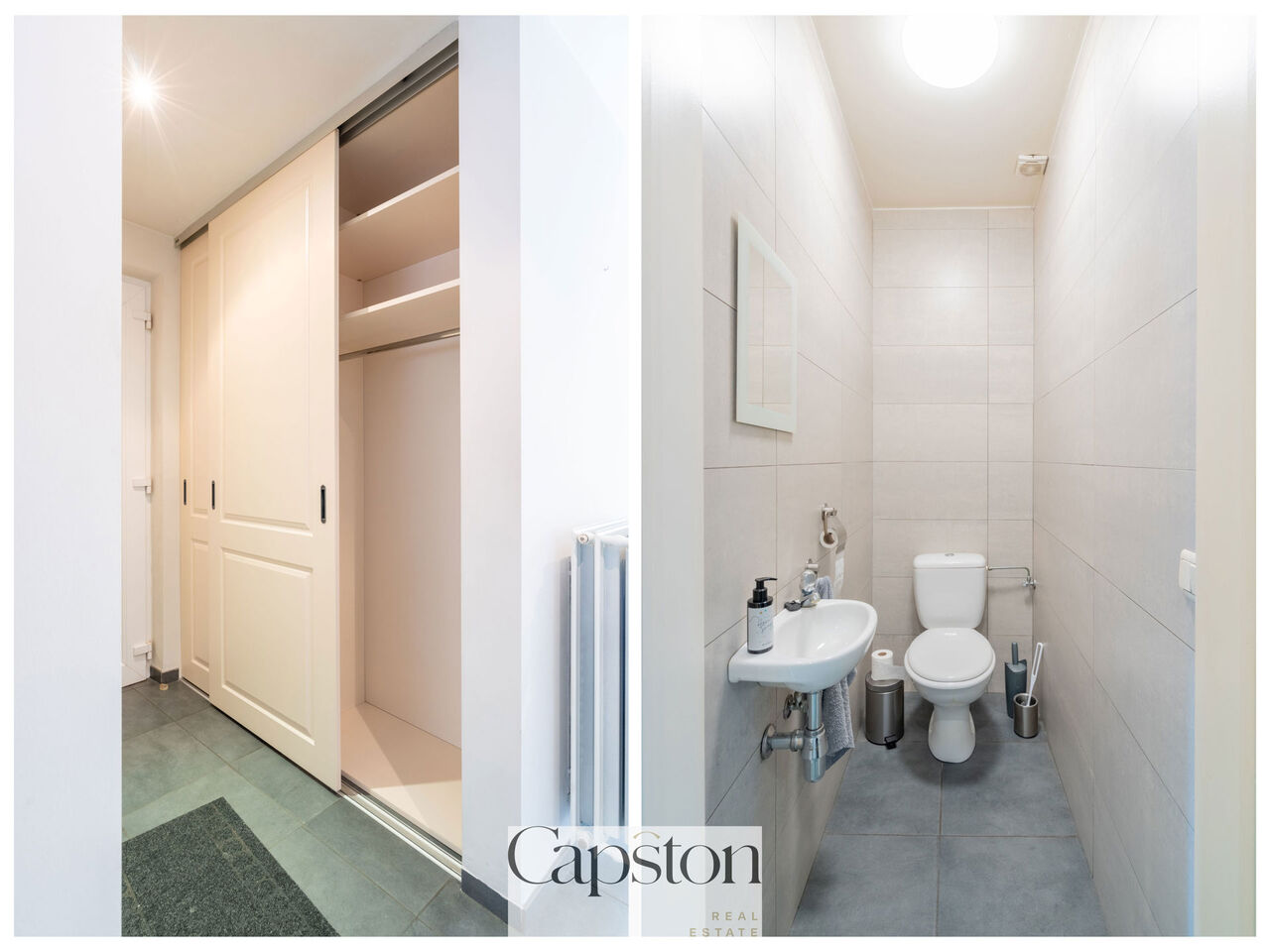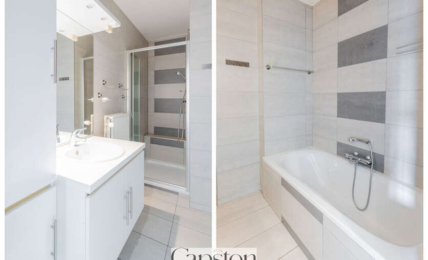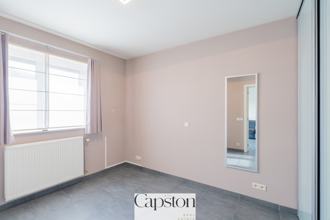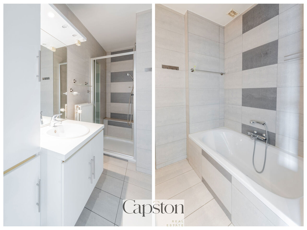 Het appartement heeft een praktische badkamer voorzien van ligbad, aparte douche en wastafelmeubel. Apart toilet. 1e slaapkamer voorzien van grote opbergkasten. 2de leefruimte achteraan met terras. Kan omgevormd worden naar extra slaapkamer. Inclusief privéstaanplaats in de gelijkvloerse garage met automatische poort.