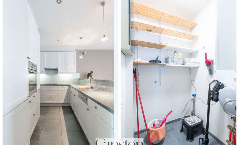 Het appartement heeft een inkomhal met ingemaakte vestiaire en naadloos overgaat tot de aangename leefruimte. Heel ruim met open en stijlvolle keuken (voorzien van alle apparaten) met aansluitend een aparte berging.