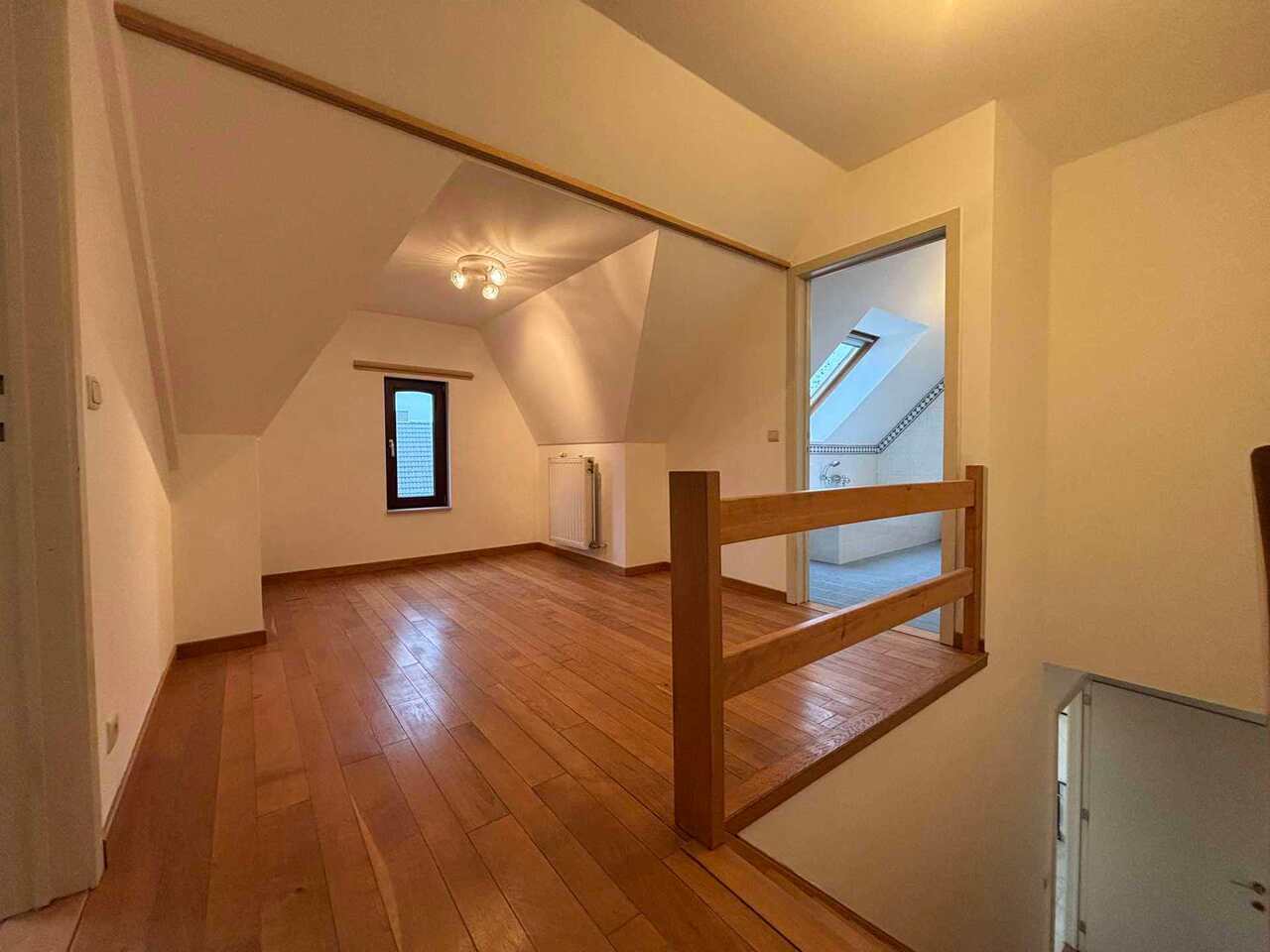 Boven het gelijkvloers bevindt zich een uitzonderlijk ruime duplex van 160 m². De woonruimte omvat een keuken, twee grote slaapkamers, een badkamer met een ligbad en een aparte doucheruimte, en een zonnig terras van maar liefst 40 m². Een aparte ingang voor de duplex zorgt voor volledige privacy. Daarnaast is parkeren op de site mogelijk, wat zowel voor bewoners als bezoekers een grote meerwaarde is.