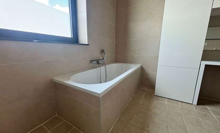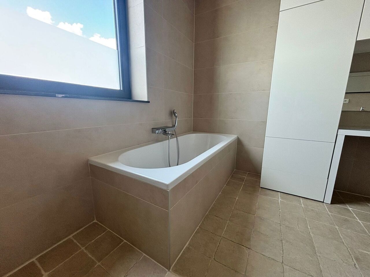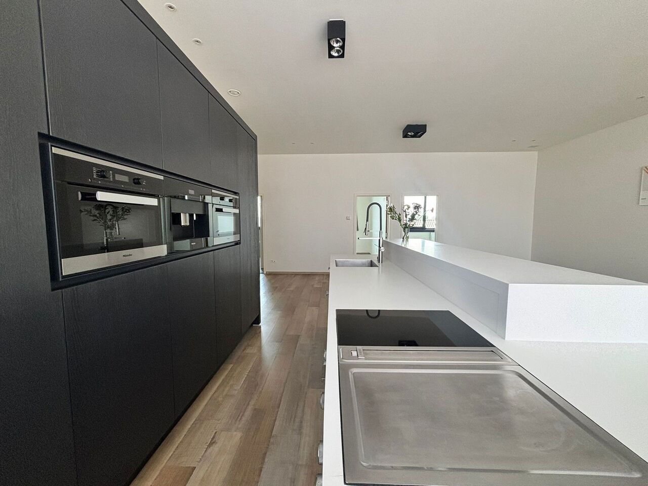 Het appartement beschikt over een inkomhal, een lichtrijke leefruimte met open, volledig uitgeruste keuken in hoogwaardige afwerking, drie comfortabele slaapkamers, een moderne badkamer, afzonderlijk toilet en een handige berging. Aan de achterzijde geniet je van een royaal terras van ca. 20 m² — een aangename buitenruimte om tot rust te komen of gasten te ontvangen. Het geheel is afgewerkt met duurzame materialen en voldoet aan de huidige energetische normen. Dankzij centrale verwarming op aardgas via een hoogrendementsketel en aluminium ramen met isolerende beglazing, ben je verzekerd van een comfortabele en energiezuinige woonervaring. Een privatieve autostaanplaats op het achterliggend terrein is inbegrepen in de huur. EPC-score: B (195 kWh/(m² jaar)