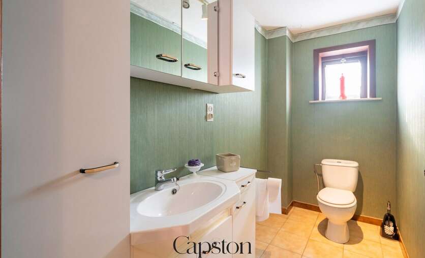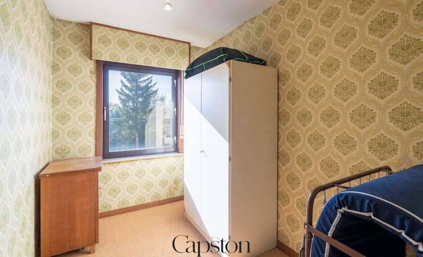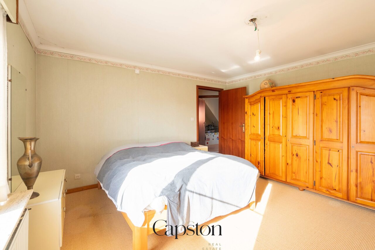 Op de tweede verdieping bevinden zich drie ruime slaapkamers en een extra kamer die ideaal kan dienen als speelkamer of bureauruimte. Er is ook een aparte badkamer met wastafelmeubel en toilet. Deze eigendom combineert een gunstige ligging met veel ruimte en potentieel — zowel privé als professioneel.
