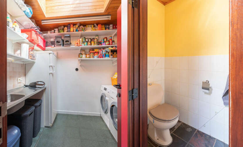 Het privé-gedeelte van de woning verwelkomt je met een lichtrijke en ruime leefruimte, die naadloos overgaat in een gezellige veranda. De volledig uitgeruste keuken van topmerk Miele is een droom voor elke kookliefhebber. Daarnaast biedt de woning een aparte waskamer, berging en een comfortabele badkamer met ligbad, dubbele lavabo en douche. Verder zijn er op de gelijkvloerse verdieping twee ruime slaapkamers plus een extra slaapkamer op de eerste verdieping.