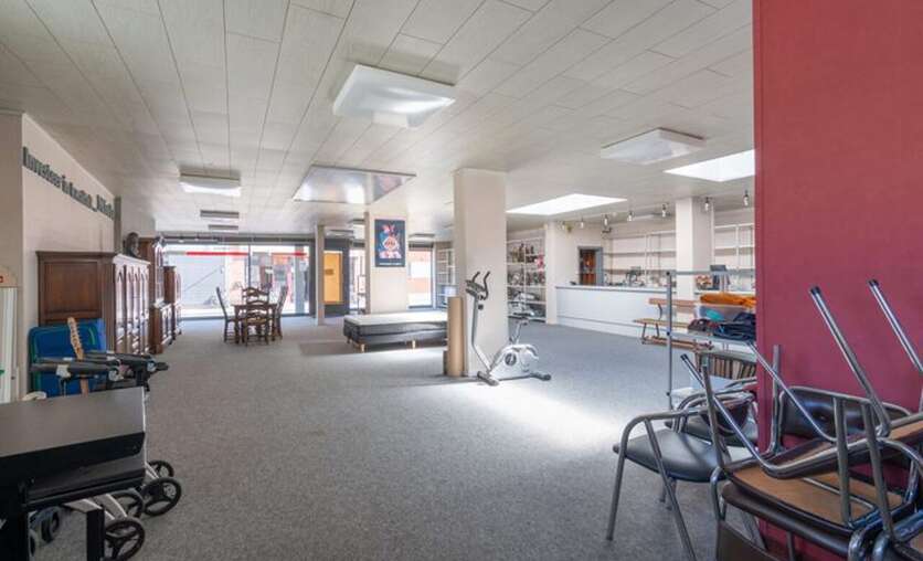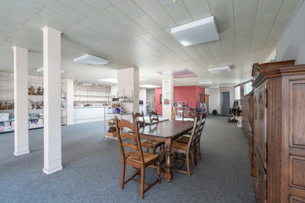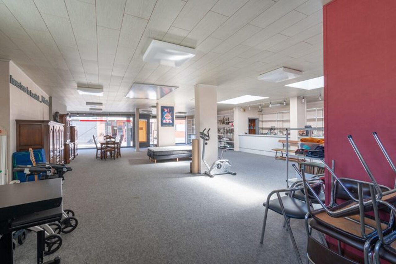 De ruime winkelruimte met etalage heeft een oppervlakte van ca. 180 m². Aansluitend vind je een apart bureau van ca. 10 m² en een praktische stockageruimte.