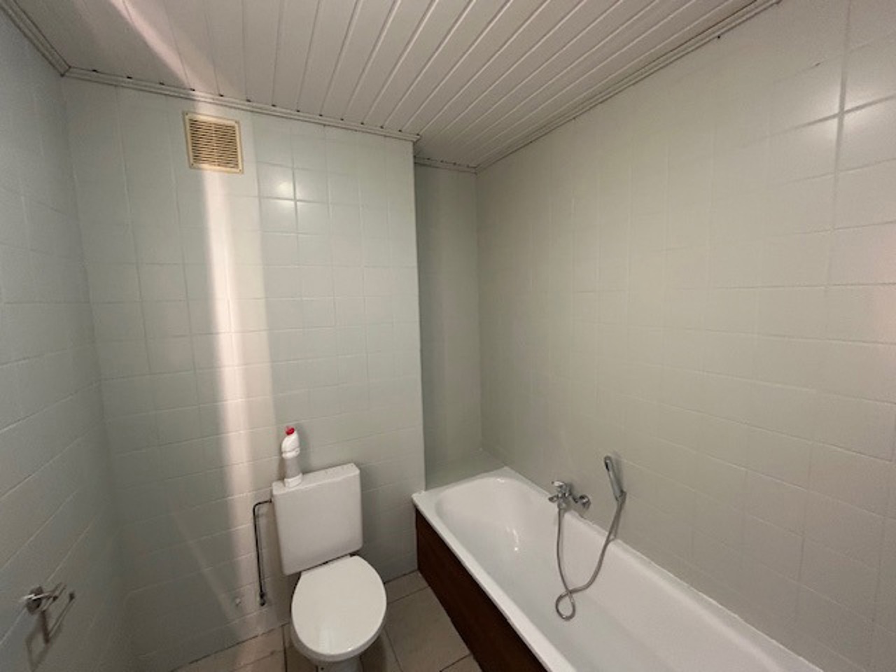Dit appartement bevindt zich op het gelijkvloers en omvat; een hal, 2 slaapkamers (1 groot & 1 klein), badkamer met ligbad (douche in bad), wastafel en toilet. Verder is er een zéér ruime leefruimte en een keuken met vaatwasser. Geen gemeenschappelijke kosten!