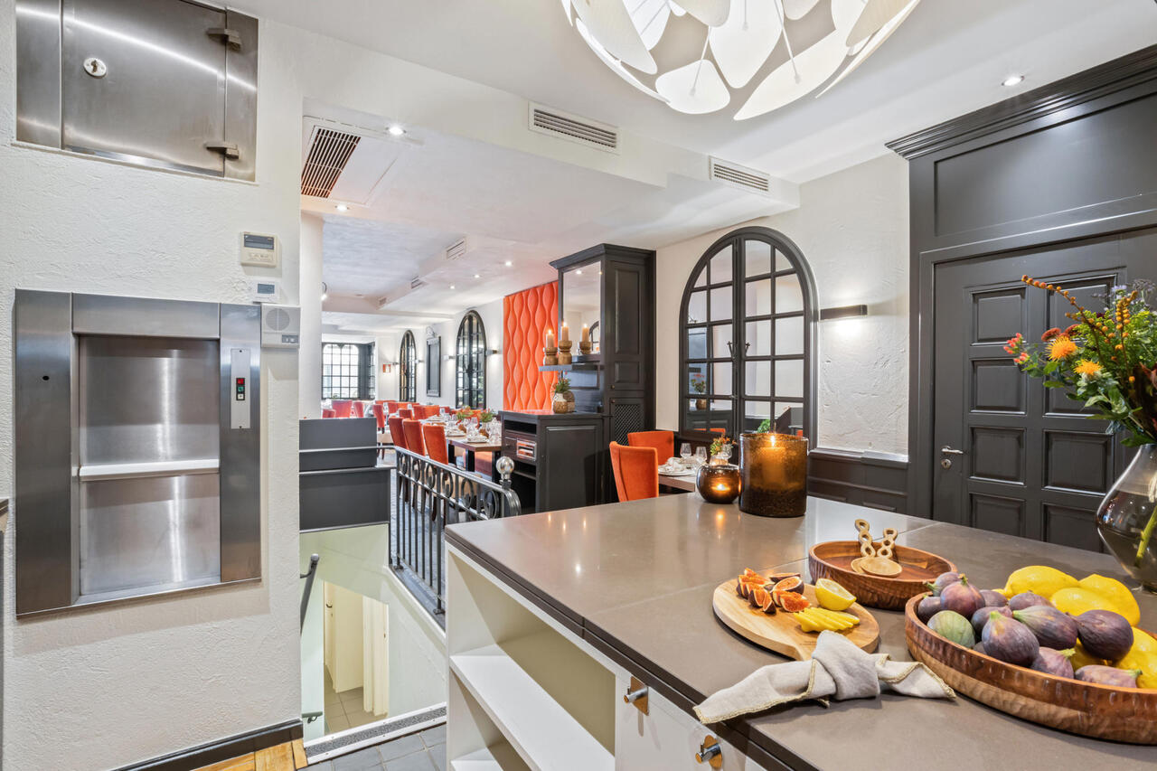 Instapklaar en volledig uitgerust; de keuken (verdieping -1) is volledig uitgerust met alle nodige apparatuur en de meubelen zijn inbegrepen.