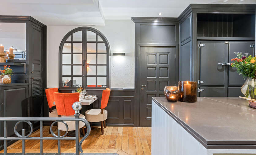 Instapklaar en volledig uitgerust; de keuken (verdieping -1) is volledig uitgerust met alle nodige apparatuur en de meubelen zijn inbegrepen.