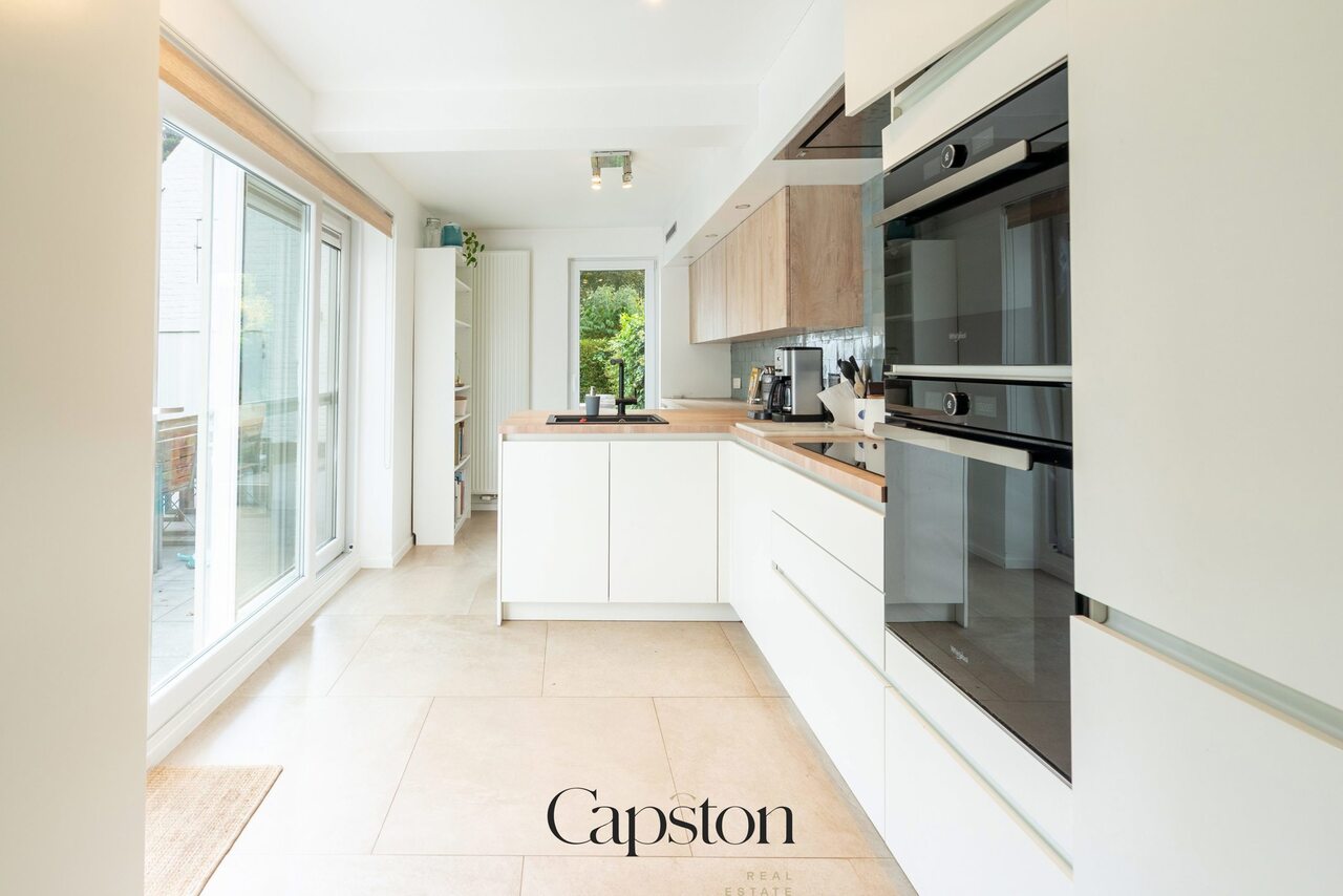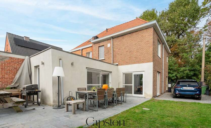 Deze recent gerenoveerde halfopen bebouwing in de Walbosstraat 3, in het centrum van Destelbergen, combineert ruimte, comfort en een praktische indeling over meerdere verdiepingen. Met een bewoonbare oppervlakte van 150 m² op een perceel van 245 m² biedt de woning alles wat een gezin zoekt. Op het gelijkvloers bevindt zich een lichte en ruime woonkamer, perfect om te ontspannen, en een volledig uitgeruste keuken met moderne apparatuur en voldoende werk- en bergruimte. Vanuit de keuken is er een aangenaam zicht op de zuidgerichte tuin en het terras, ideaal voor zonnige momenten of buitenactiviteiten. Een inkomhal met gastentoilet maakt het geheel compleet. De eerste verdieping telt twee ruime, comfortabele slaapkamers en een volledig uitgeruste badkamer, wat praktisch is voor dagelijks gebruik. De zolderverdieping is ingericht als masterbedroom met een eigen badkamer en dressingsruimte, wat zorgt voor extra privacy en comfort. In totaal beschikt de woning over twee badkamers en drie slaapkamers, verspreid over de verdiepingen, wat het wooncomfort aanzienlijk verhoogt. Buiten geniet u van een afzonderlijke garage/schuur en een oprit, ideaal voor parkeren, opslag of hobbyruimte, de voorzieningen voor een laadpaal zitten tevens al klaar. Dankzij de toplocatie in het centrum van Destelbergen zijn winkels, scholen en openbaar vervoer op wandelafstand.