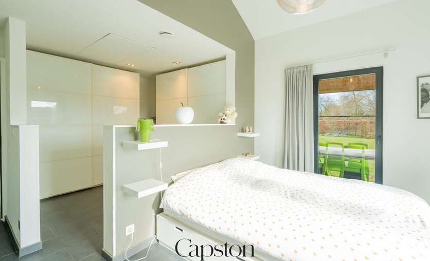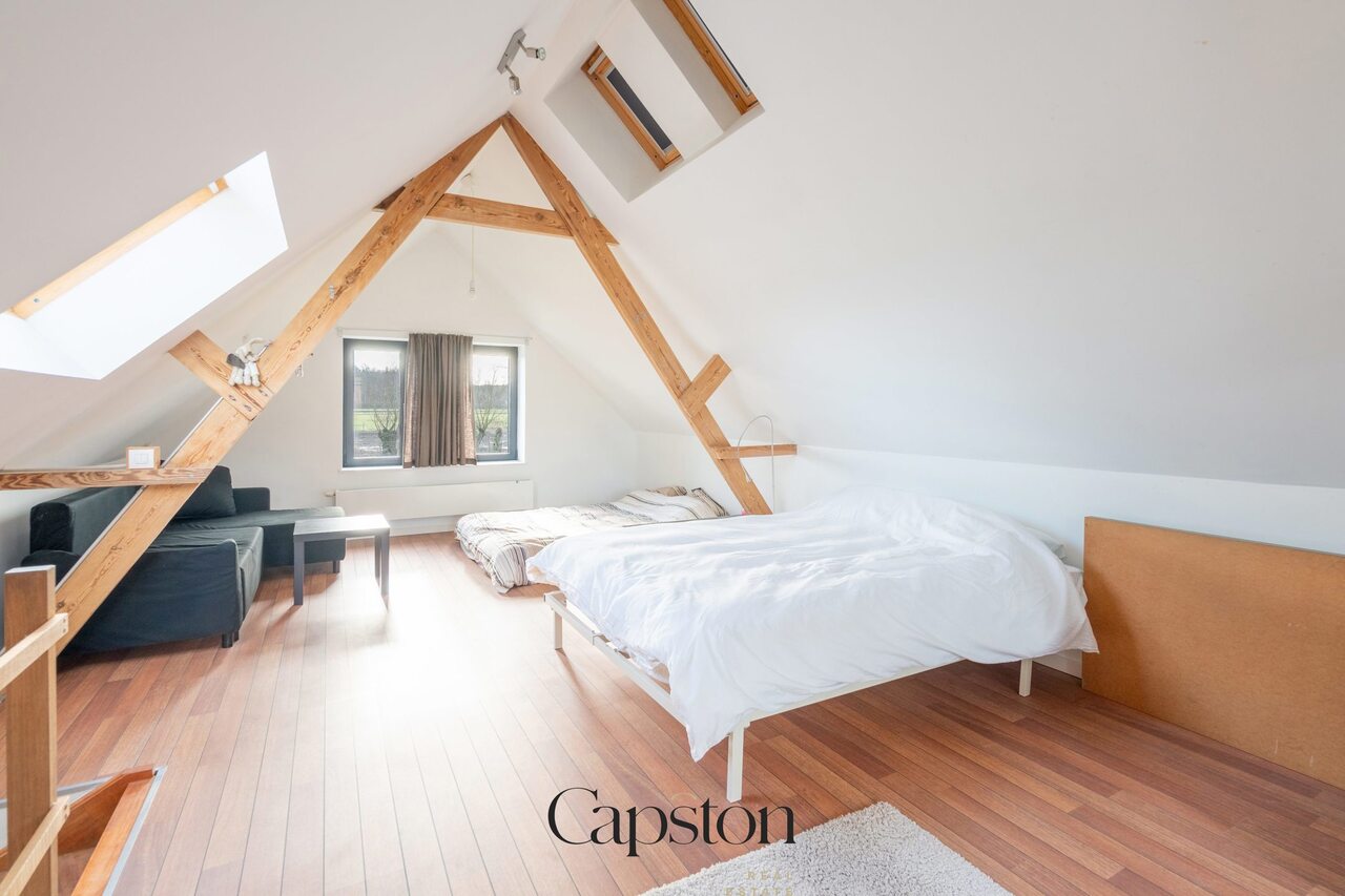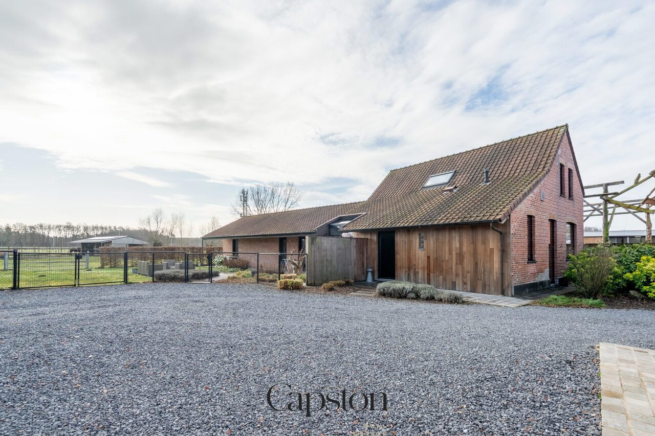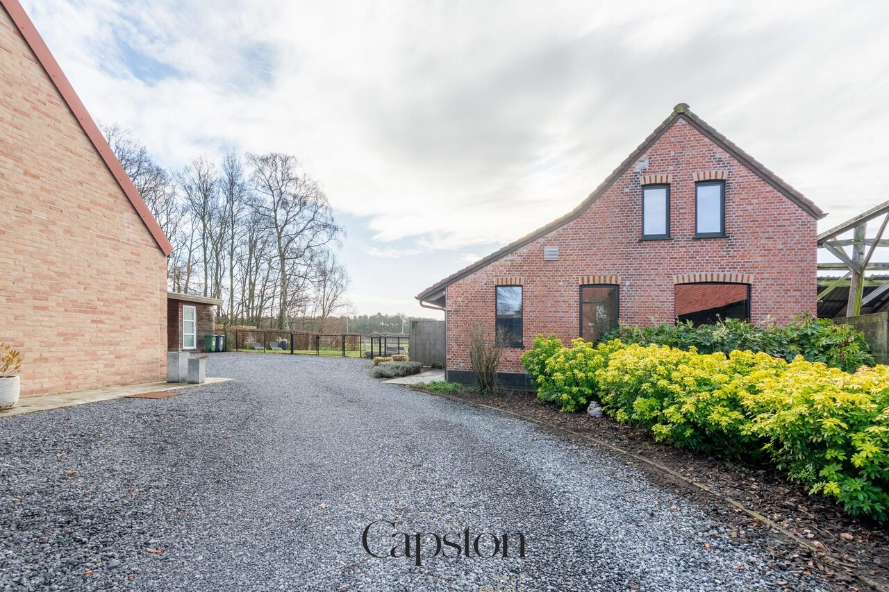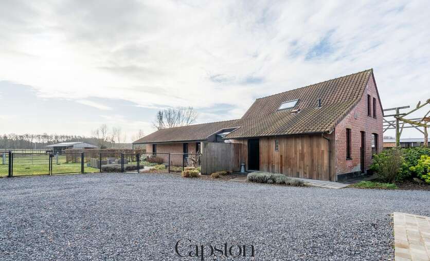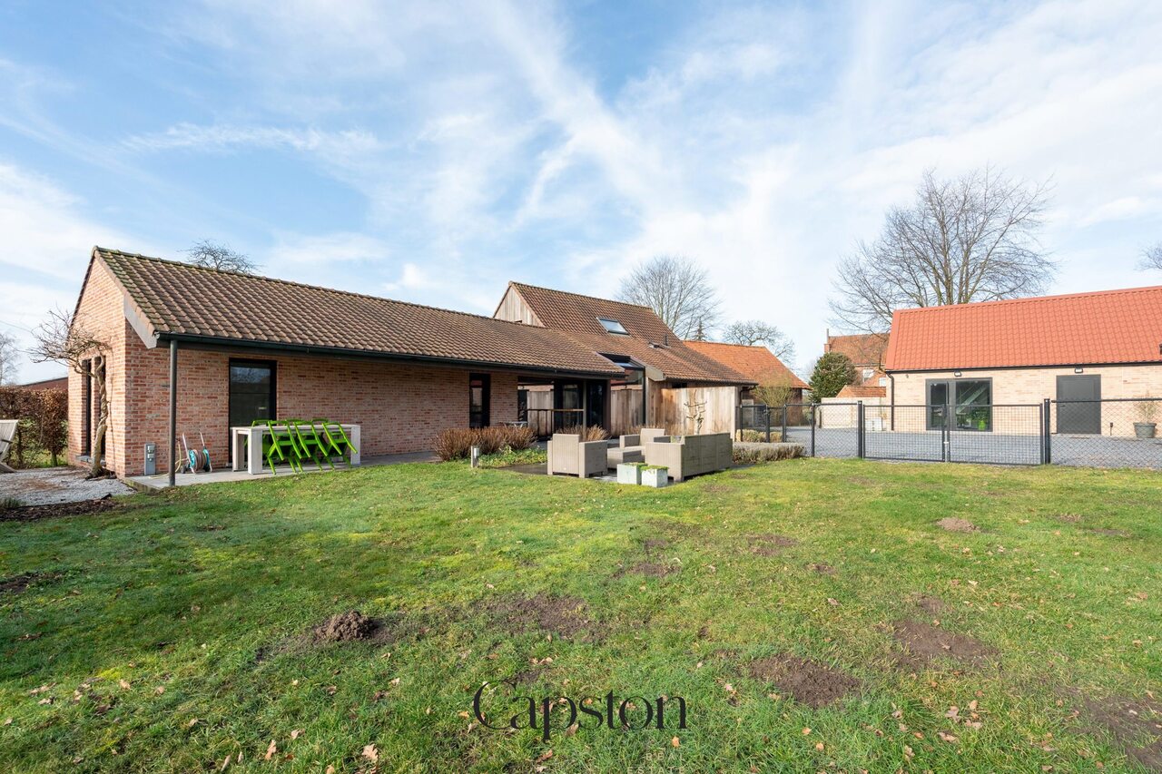 De woning is afgewerkt met hoogwaardige en duurzame materialen. De leefruimte is open en geniet van veel natuurlijke lichtinval. De keuken is volledig ingericht en voorzien van alle hedendaagse toestellen. Aparte kelder. Aparte wasruimte. De masterbedroom beschikt over een aparte inloopdressing. Op de eerste verdieping bevindt zich een ruime slaapkamer die eenvoudig kan worden opgesplitst in twee afzonderlijke kamers. Buiten is er een aangenaam terras en een zonnige tuin. De tuin sluit aan op het landelijke karakter van de omgeving. Badkamer is voorzien van lavabo en ruime inloopdouche.