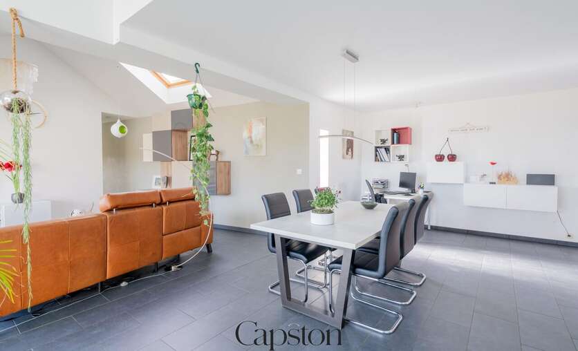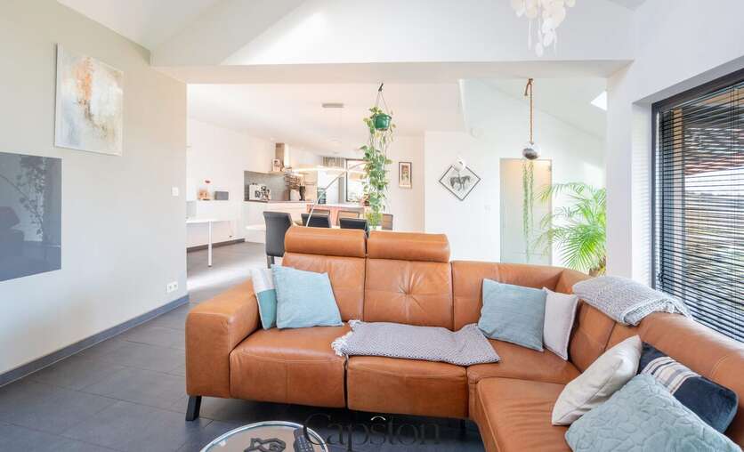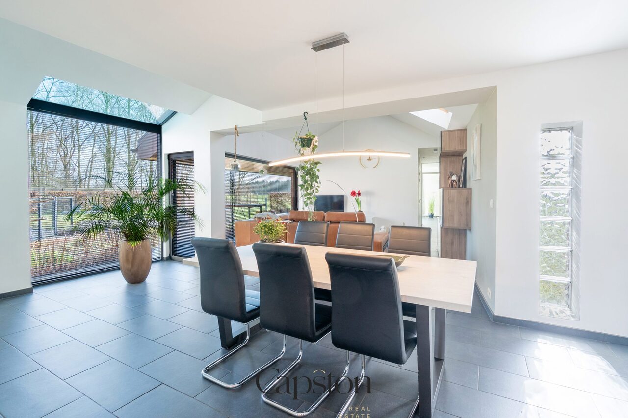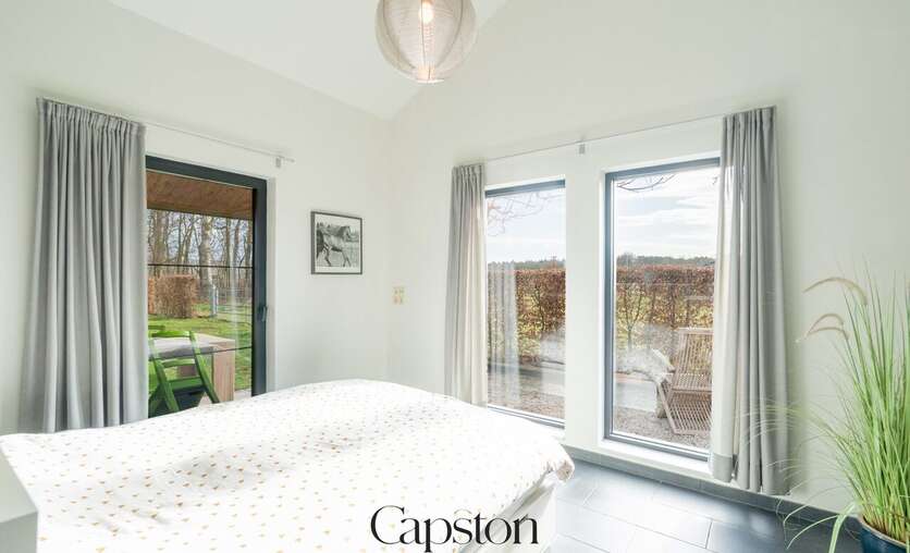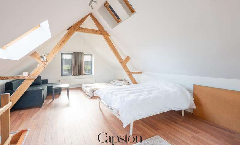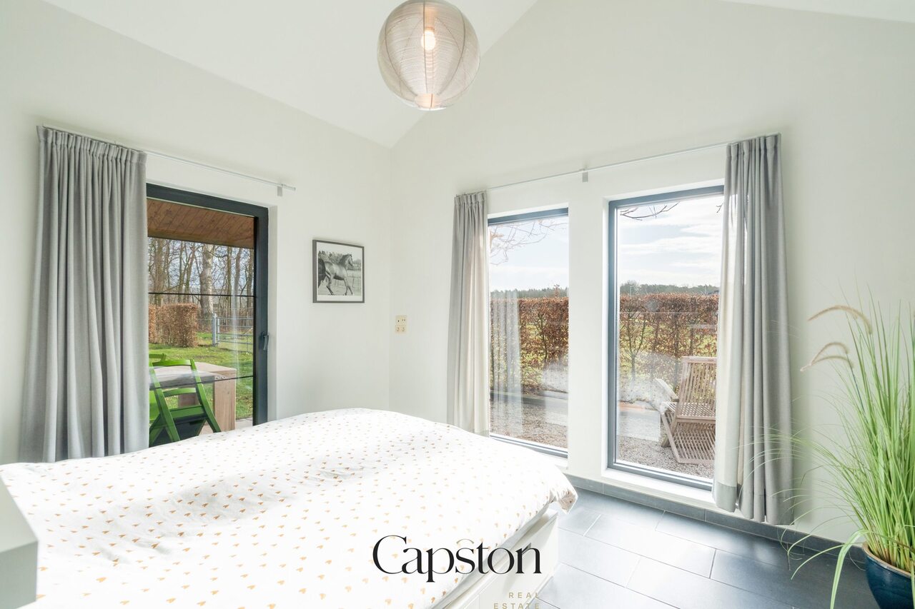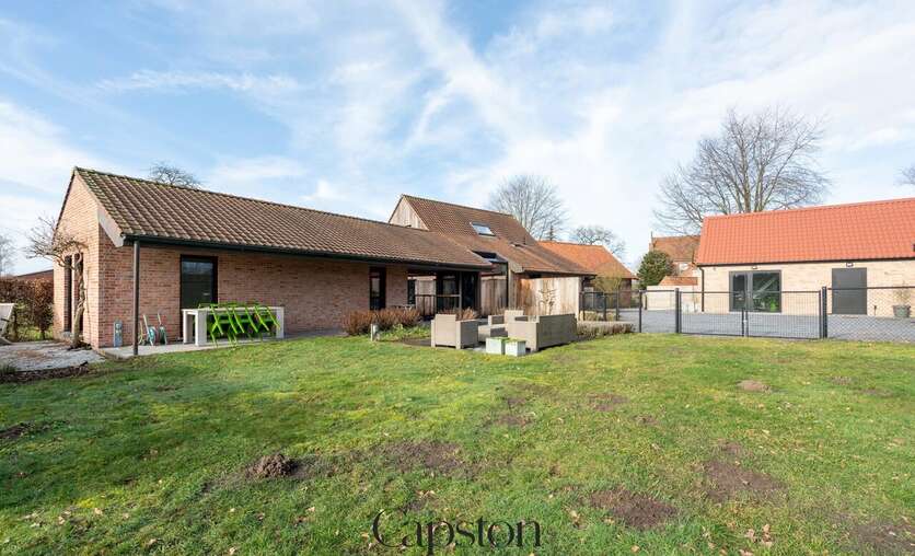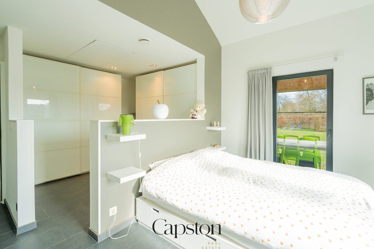 De woning is afgewerkt met hoogwaardige en duurzame materialen. De leefruimte is open en geniet van veel natuurlijke lichtinval. De keuken is volledig ingericht en voorzien van alle hedendaagse toestellen. Aparte kelder. Aparte wasruimte. De masterbedroom beschikt over een aparte inloopdressing. Op de eerste verdieping bevindt zich een ruime slaapkamer die eenvoudig kan worden opgesplitst in twee afzonderlijke kamers. Buiten is er een aangenaam terras en een zonnige tuin. De tuin sluit aan op het landelijke karakter van de omgeving. Badkamer is voorzien van lavabo en ruime inloopdouche.