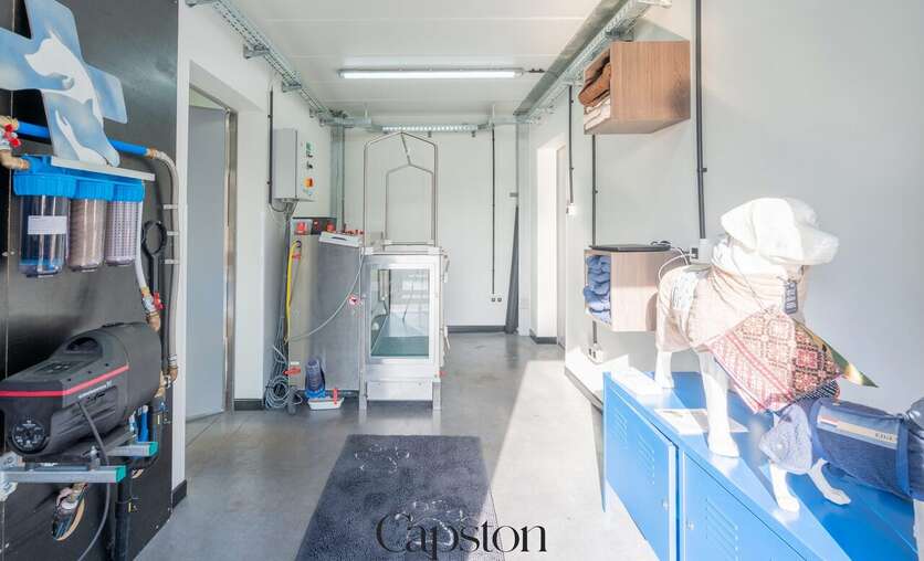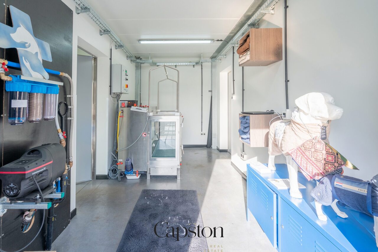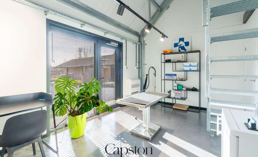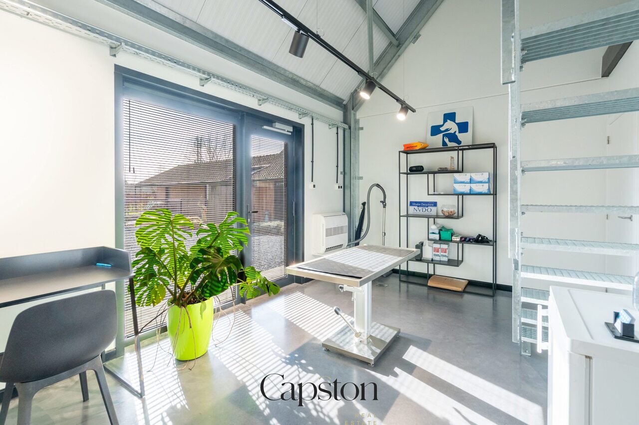 Aansluitend aan de woning bevindt zich een aparte praktijkruimte. Deze wordt momenteel gebruikt als dierenartspraktijk. De ruimte is volledig afzonderlijk toegankelijk en kan worden omgevormd tot een multifunctionele ruimte zoals kantoor, praktijk, hobbyruimte of bijkomende woonruimte.